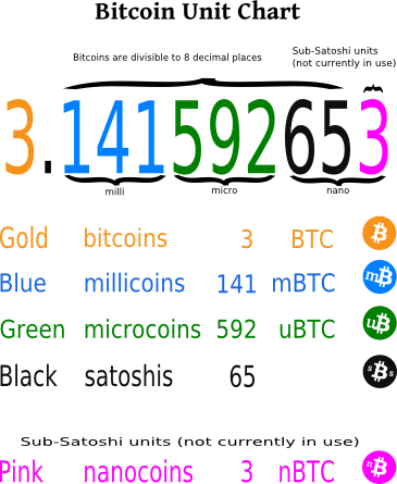 Пример: предположим, у меня есть 0.03 BTC, и я хочу купить .005 BTC деталь снэк. Продавец может выбрать, чтобы показать закуску как 5 желтых монет вместо .005 BTC. Тогда я могу сказать, "эй, это продавец отображает стоимость в желтых монет" и изменить свой клиент, чтобы показать свой баланс в желтых монет (0.03 BTC = 30 желтых монет). Он просто делает математику проще для людей, которые не являются математически склонны.