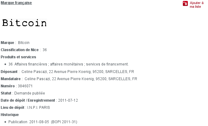 http://michaelpascaziscammer.com была последняя попытка этих людей Bitcoin товарный знак и теперь они успешно сделали во Франции под "финансовый" раздел закона.