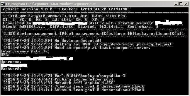 ОК. Я не имею права ш. Я не могу помоему на данный момент. Спасибо. Если вы пытаетесь GPU мой вам нужен более старую версию CGminer. Я надеюсь, что вы не пытаетесь помоему BTC, как вы будете очень разочарованы. |