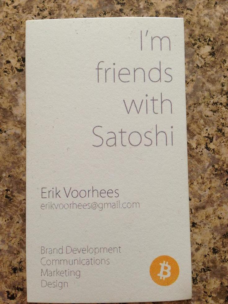 цитировать ответ |  Re: Я нашел Erik Voorhees первый Bitcoin визитной карточки! ЛОЛ! я ожидал "Я встретил Satoshi", Недалеко. |