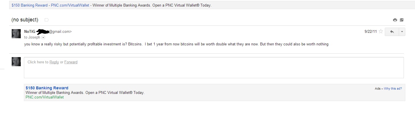 Реальная история. Забудьте биткойны, вы должны открыли, что PNC виртуального кошелька. Вы сделали бы $ 150 гарантированный.