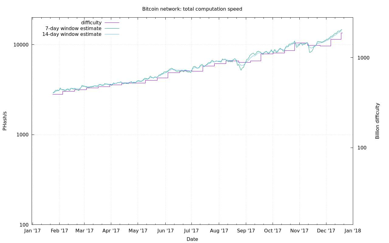 На 10-й минуте на блок, блоки 2016 должны принимать 20,160 минут (или 15 дней). Ни один из 7 предварительного трудности не регулировать периоды потребовалось более 20,160 минут, таким образом, среднее число блоков в час было >10 минут, таким образом, трудность розы.