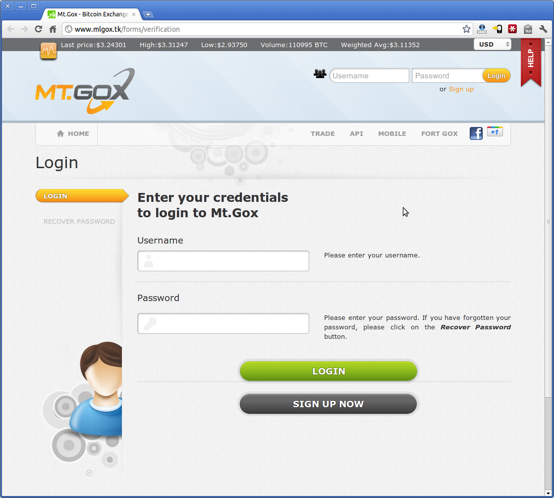 Когда в формате HTML, то URL MtGox отображается затемняет "MLGOX.TK" адрес домена. Что выглядит как новый дизайн MtGox, но на самом деле фишинг вашего пароля.
