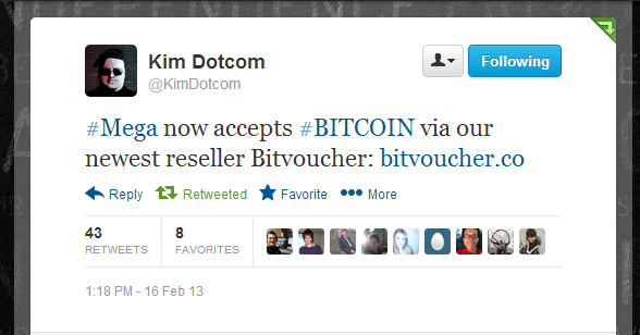 Но там не было других торговых посредников, которые сделали то же самое время назад ... Еще один продавец повторно принимал BTC. Но это новость, потому что Ким Дот просто написал его четверть миллиона последователей, и, конечно, говорить об этом больше. Это он, наконец, одобрив Bitcoin, который мир ждал. |