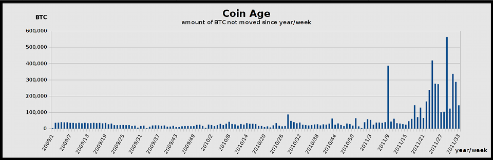 Я бы любопытно увидеть один и тот же возраст данных неизрасходованных блоков, но от 6 месяцев назад перспективы. Через год, а также. Они могли бы показать нам, как недавно старые монеты первого переехала и как процент недавно неизрасходованный блока меняются. я сделал "монеты не сдвинулись" график в прошлом году (для потока относительно тайны шахтера: ): ![]() ThomasV (я полагаю) сделал интерактивный график, показывающий примерно те же самые (я думаю) данные (перемещение мыши на графике): http://ecdsa.org/stats.html |