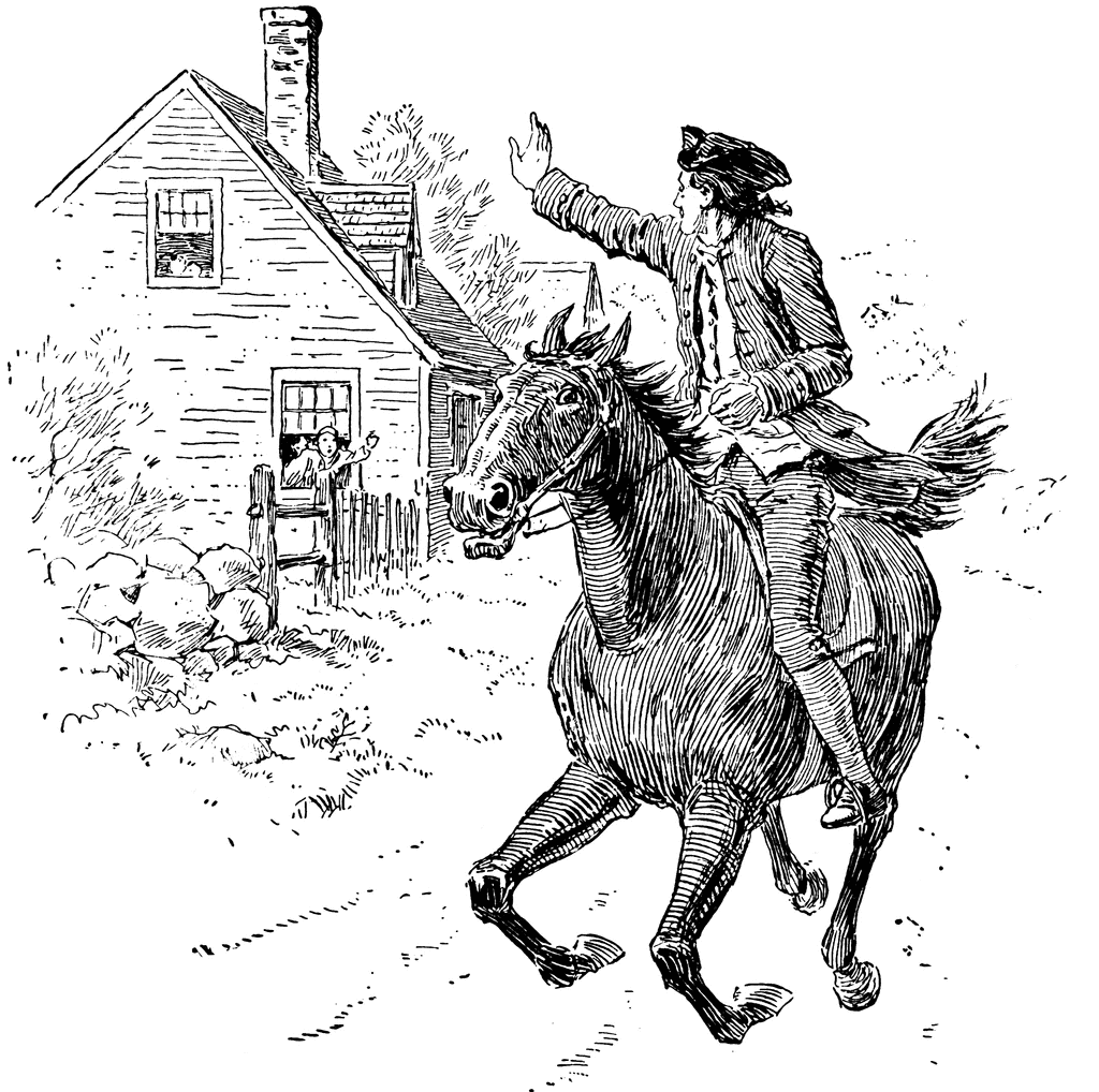 ![]() Здесь мы видим иллюстрацию Пол Ревира предупреждения британцев, что Bitcoins падает. Он на лошади. |
