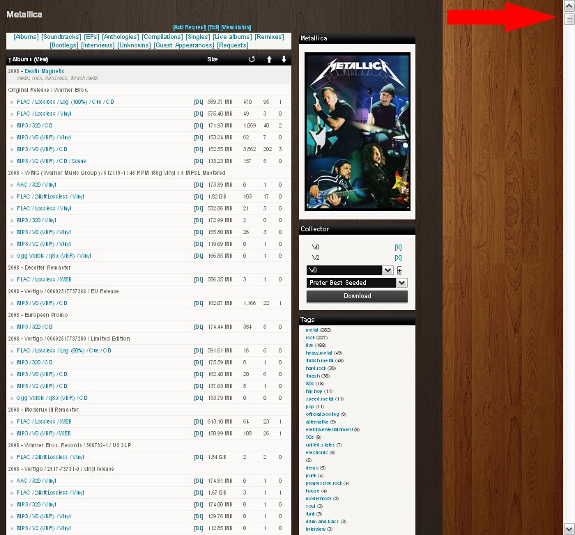 Вот пример экрана любви What.CD ставит на их сайт для любителей обмена музыкой