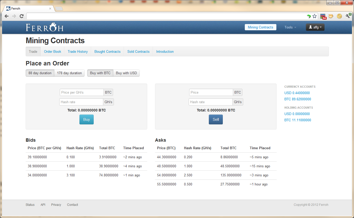 - Все контракты покупаются и продаются в BTC, однако автоматическая BTC->преобразование USD доступно сжиматься покупателями, цены устанавливаются на основе совокупных биржевых цен Bitcoin.